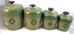 Did I mention about the ugly wallpaper? The paper in the kitchen is a fruit medley pattern on a white background. Some people like it, but I can't stand it! I decided I would go for a retro feel and start researching kitchen gadgets and doo-dads to make my kitchen something I love. I started on ebay looking at canisters, which then got me to thinking "How would I know if it's vintage/retro or a reproduction? I have found to look for maker names like Lustro Ware and Kromex to be able to spot vintage kitchen wares.